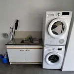 La villa incluye un cuarto de baño con una ducha a ras de suelo y un inodoro separado. Además, para tu comodidad, dispone de secador de pelo, una secadora y toallas de baño.